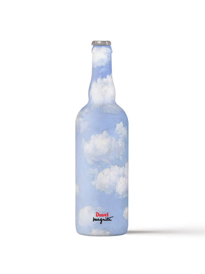 Duvel Magritte is een eerbetoon aan de Belgische surrealist René Magritte. De exacte replica van het origineel werk CIEL-BOUTEILLE uit 1940 op deze Duvelfles heeft ook binnenin een surrealistisch tintje meegekregen. De altijd heldere Duvel is deze keer ongefilterd gebrouwen en krijgt zo een magisch mooie troebelheid die verwijst naar de wolkenwereld van Magritte. Gelimiteerde oplage!