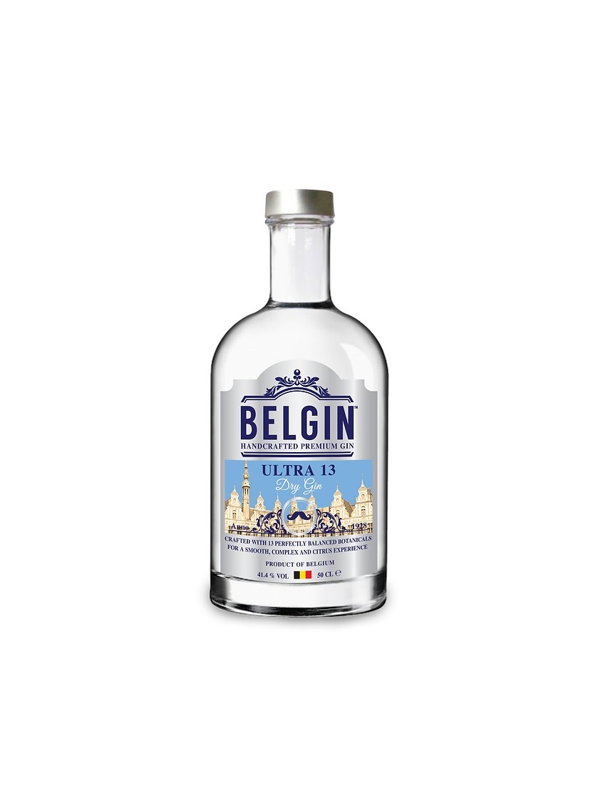 Belgin Ultra 13 is ambachtelijk gemaakt met een uitstekende combinatie van de 13 zuivere en natuurlijke botanicals vanuit de hele wereld inclusief fijn kruidige Belgische hop voor een perfecte smaak. De 13 fijne kruiden en specerijen worden gedistilleerd in een traditionele koperen alambiek. De meesterlijke combinatie van botanicals zijn oa. jeneverbes, citroenschillen, appelsienschillen, kaneel, kruidnagel, engelwortel en vanille. Belgin Ultra 13 is een zeer elegante en zacht kruidige gin.